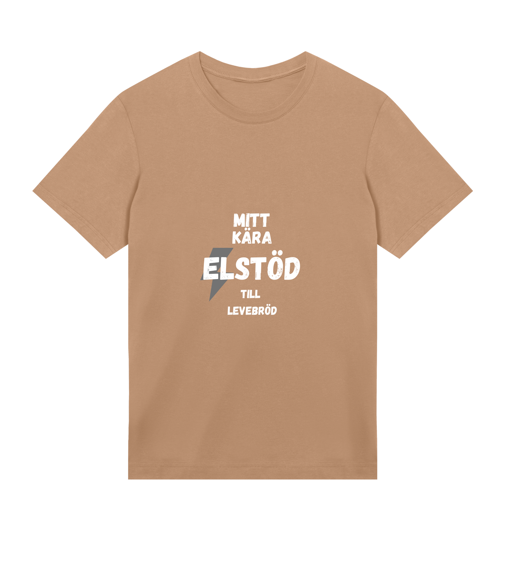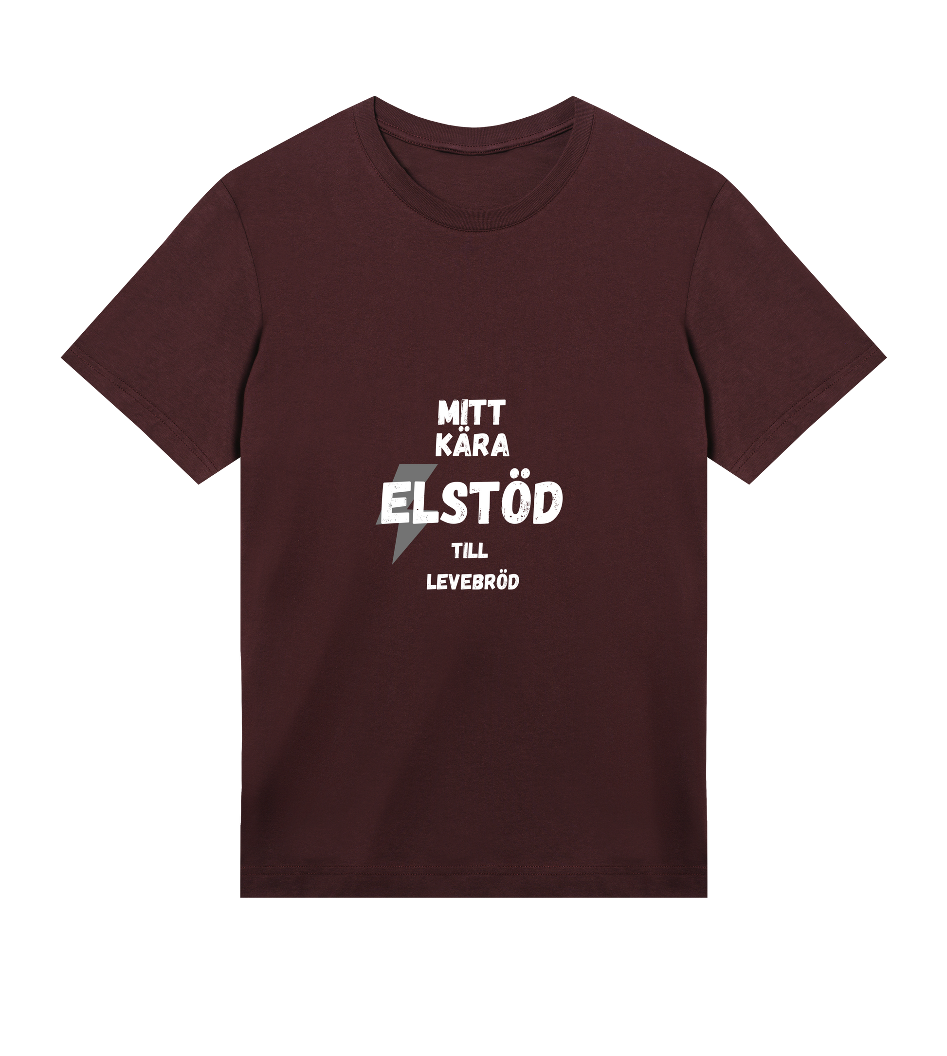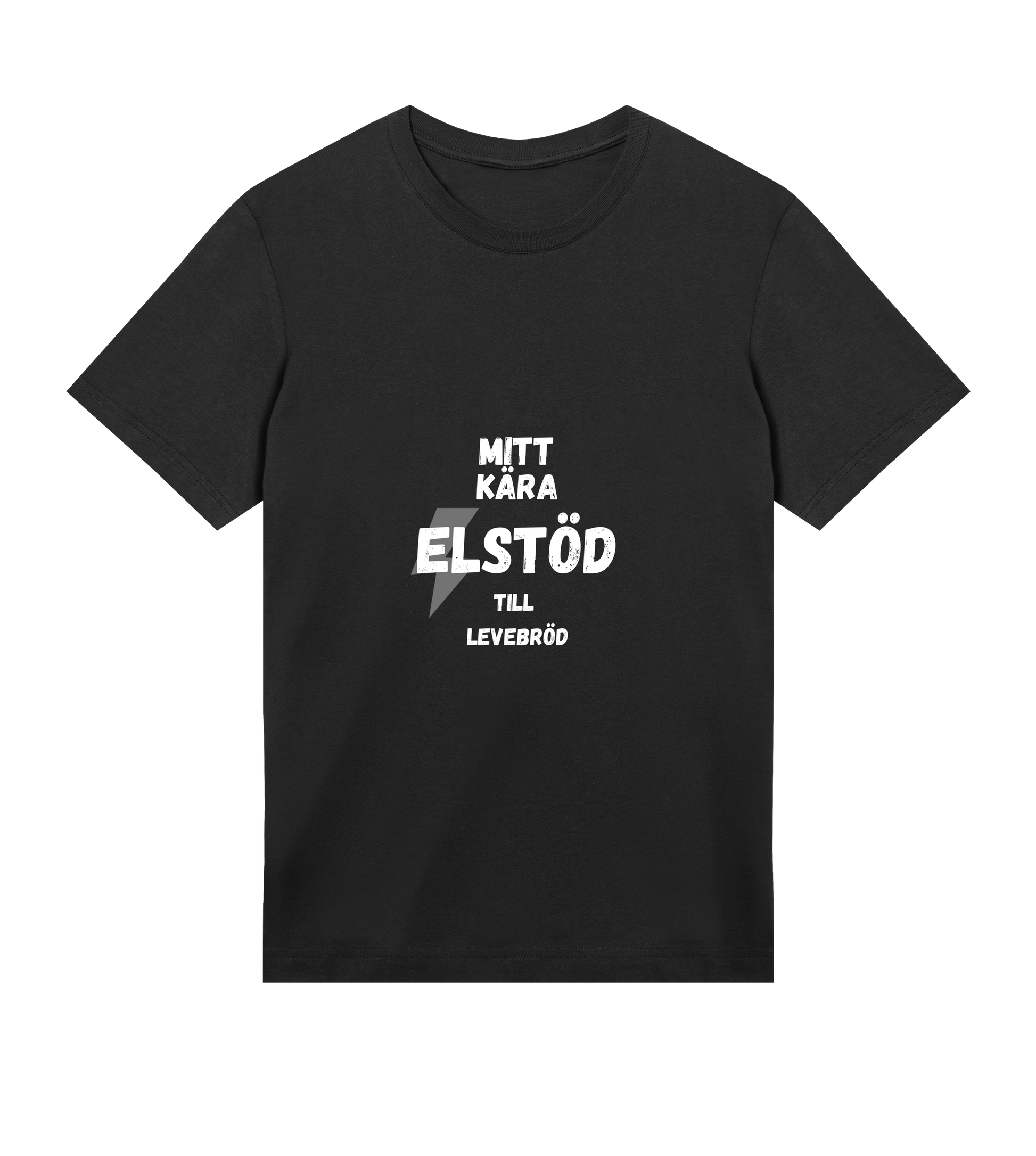 En T-shirt med refrängen "Mitt kära Elstöd till Levebröd" från låten "Elstöd" av "Alex Fors"